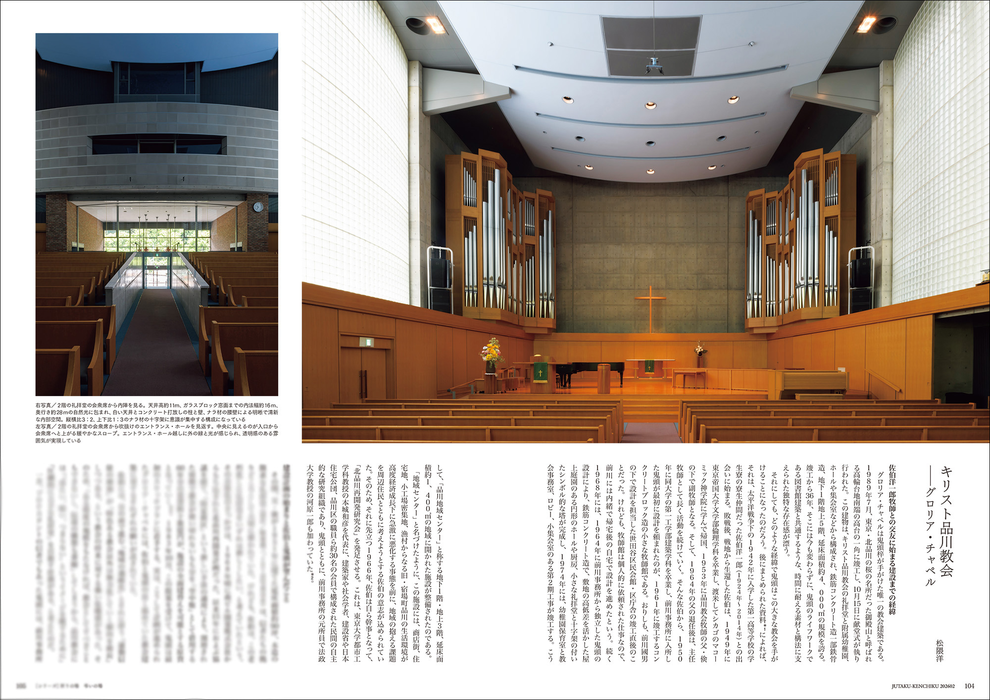 グロリア・チャペルは品川駅近くの高台に建つ、鬼頭梓の手がけた唯一の教会建築である。自身もクリスチャンであった鬼頭の晩年の作品としても知られるこの教会は、いかにして生まれたのだろうか。大規模な都市再開発の進む品川の地に建ち、光に包まれた教会はいまも静かにたたずみ、人々に問いを投げかけ続けている。この教会が生まれた背景とその設計思想にせまる。(このページの写真=山田新治郎)