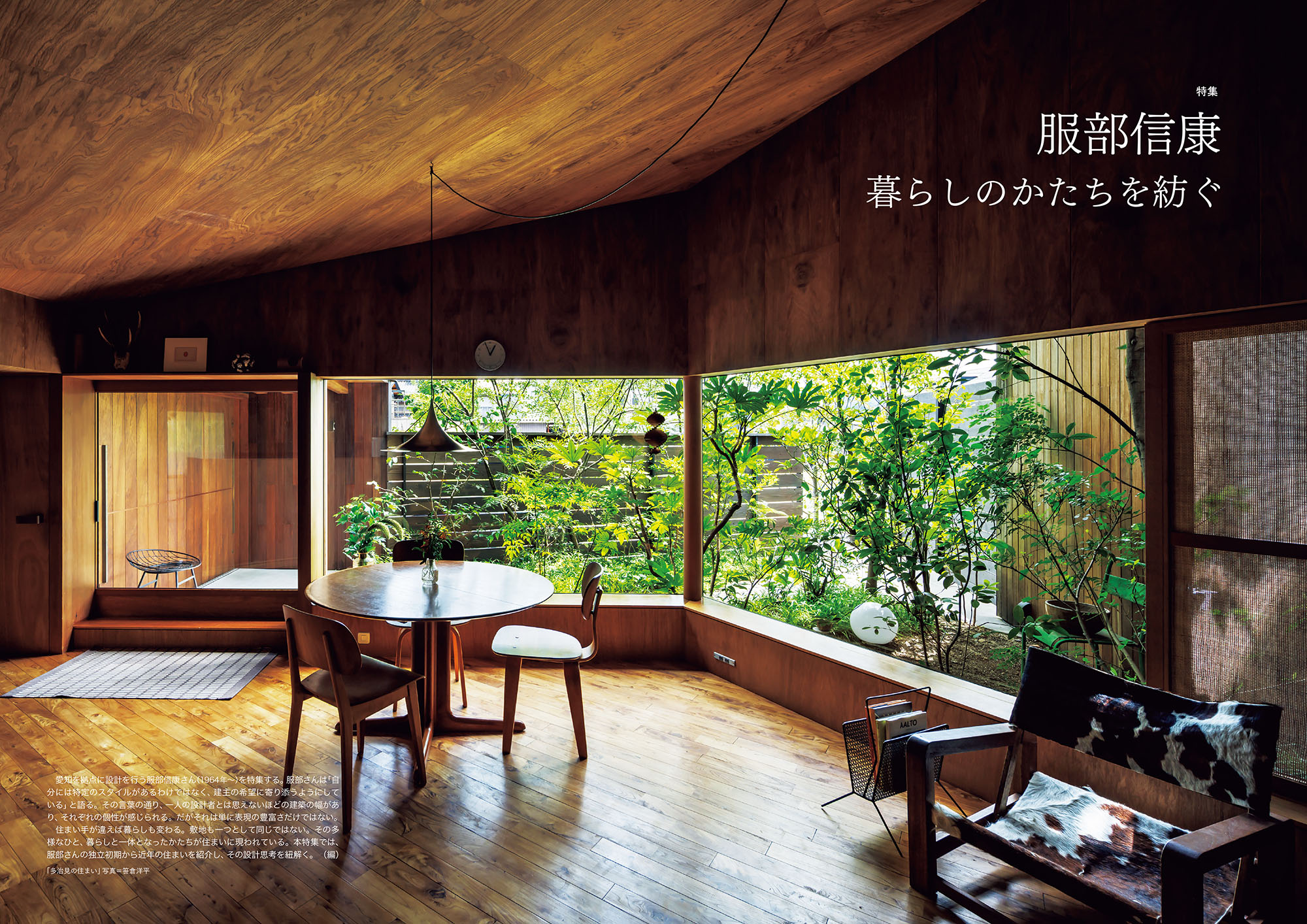 愛知を拠点に設計を行う服部信康さん(1964年~)を特集する。服部さんは「自分には特定のスタイルがあるわけではなく、建主の希望に寄り添うようにしている」と語る。その言葉の通り、一人の設計者とは思えないほどの建築の幅があり、それぞれに個性が感じられる。だがそれは単に表現の豊富さだけではない。住まい手が違えば暮らしも変わる。敷地も一つとして同じではない。その多様なひと、暮らしと一体となったかたちが住まいに現われている。本特集では、服部さんの独立初期から近年の住まいを紹介し、その設計思考を紐解く。